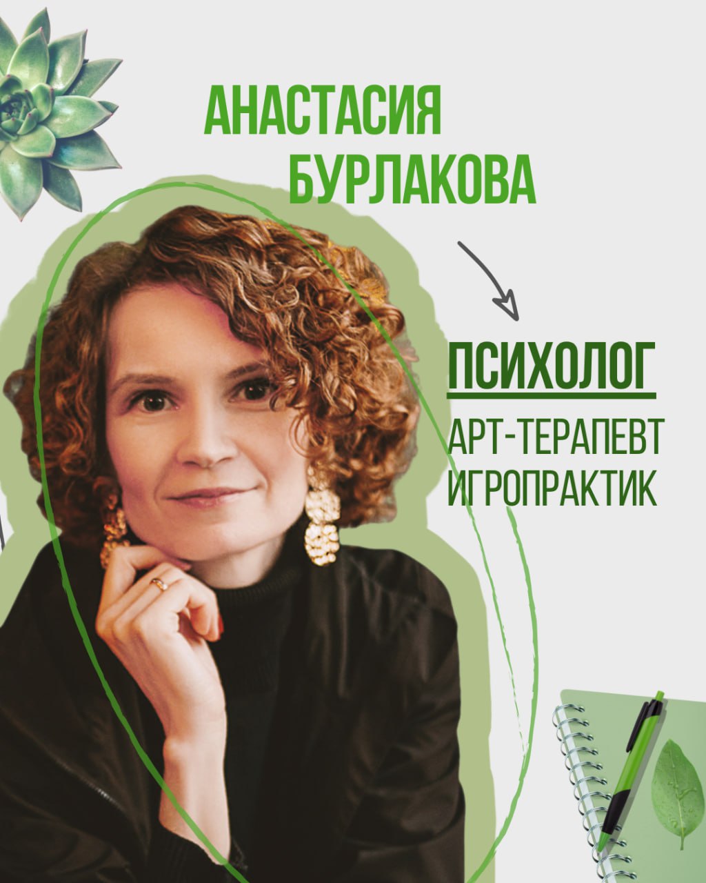 Меня зовут Анастасия Бурлакова, я психолог, арт-терапевт и игропрактик.